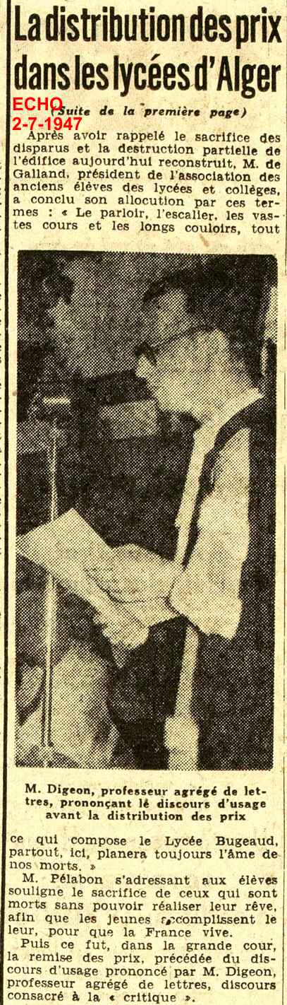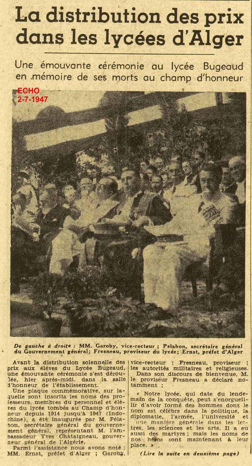d'Alger ; Garoby,vice-recteur ; Fresneau, proviseur ; les autorités