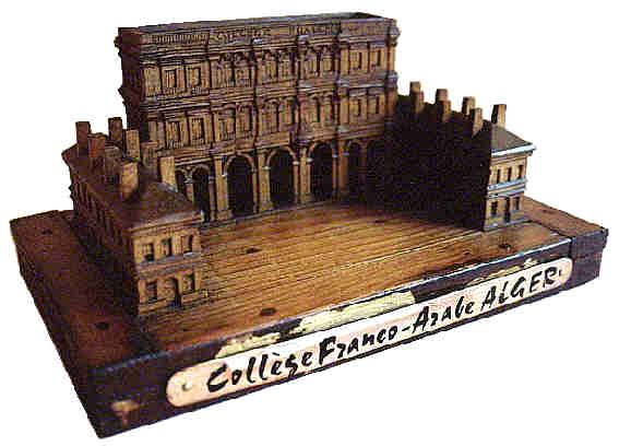 | Suite des recherches par Michel Chapuis.... ------Après examen des photos de votre site, ce sont les cartes postales des bâtiments du 19e Corps d'Armée qui correspondent le mieux à la maquette, tant au niveau du nombre d'étages que de la disposition et la forme des ouvertures. ------Ceci corrobore les éléments trouvés dans le livret XI des Cahiers du centenaire de l'Algérie Française " La France et les Oeuvres Indigènes en Algérie" : «...Plus hardie était la création de collèges arabes-français. -----Sans doute, y avait-il déjà, dans les collèges ou au Lycée d'Alger, quelques élèves musulmans; mais c'étaient là des exceptions Il s'agissait de faire bénéficier plus largement les jeunes indigènes de notre enseignement secondaire, en l'adaptant à leur état, en le mettant à leur portée, en effaçant soigneusement tout ce qui pouvait heurter leurs idées et leurs murs. Le collège arabe-français d'Alger, créé par décret du 14 mars 1857, installé dans le bâtiment qui est devenu l'Hôtel du XIXème Corps d'Armée, admit même des Européens, mais seulement comme externes. Dans la pensée des promoteurs, le cours de leurs études achevé au collège, les élèves, qui devaient recevoir un diplôme spécial, continueraient ensuite leurs études au Lycée. Ils deviendraient ainsi soit les agents de notre administration, soit après un stage à l'École de médecine, créée le 4 août 1857, des sortes d'auxiliaires médicaux exerçant en tribu. Il est curieux de constater à quel point la fondation de cette École de médecine était liée à celle du collège arabe-français. ... -----Le 28 octobre 1871, un arrêté de l'Amiral de Gueydon, Gouverneur Général, supprima de fait les collèges arabesfrançais, en versant leurs élèves, à Alger, au Lycée, à Constantine, au collège qui d'ailleurs, en profita pour s'installer dans les locaux de Sidi M'Cid.» ----- Il serait intéressant de retrouver des photographies d'avant 1871 ou des gravures qui ont certainement du paraître dans l'Illustration (qui était une des sources documentaire de notre sculpteur). |