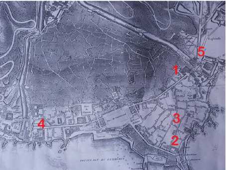 Cette belle vue aérienne de la ville d’Alger vous remettra dans l’ambiance de « là-bas », et vous rappellera quelques repères topographiques indispensables avant d’entrer dans le vif du sujet, le temps pour moi de vous indiquer mes sources et de remercier les personnes qui m’ont généreusement fourni de nombreuses informations. La source essentielle est l’opuscule de Henri Klein (Feuillets d’El Djezaïr n°12 1933) intitulé « Centenaire du Lycée d’Alger 1833-1933, quelques souvenirs ». J’y ai puisé largement, ainsi que dans l’article d’Emile Béraud paru la même année dans la revue Africa. J’ai trouvé aussi de précieux souvenirs dans le site Internet consacré au Lycée Bugeaud par Bernard Venis,(c'est moi !)que je remercie de m’avoir permis d’utiliser documents et photographies.. Mais je voudrais remercier tout particulièrement, parmi les personnes qui m’ont apporté aide et conseils, nos amis le docteur Duboucher et Edgar Scotti (vous ne vous en étonnerez pas !), et aussi le docteur Daprès, de Montpellier. Quant à Edouard Pons, ça n’est pas à titre d’informateur que je dois le remercier, mais bien à celui de collaborateur particulièrement compétent, actif et dévoué, sans lequel cette conférence n’aurait été qu’un monologue sans grand intérêt. Pourquoi Lycée d’Alger et non Lycée Bugeaud ? D’abord parce que le lycée n’a été baptisé Bugeaud que tardivement, après la deuxième guerre mondiale. Auparavant on l’appelait simplement Lycée d’Alger, puis Grand Lycée après la création des annexes de Ben Aknoun et de Mustapha. Les autres établissements secondaires étaient des collèges ou des E.P.S. Pour les filles, la Ligue de l’Enseignement n’a été créée qu’en décembre 1872, et n’est devenue Lycée de jeunes filles qu’en décembre 19 10 (futur Delacroix). Ensuite parce que le Lycée d’Alger tel que nous le connaissions n’a commencé à fonctionner qu’en octobre 1868. Auparavant il occupait d’autres locaux dans la vieille ville. Une histoire du lycée comporte donc toute une partie concernant cette période antérieure aux années 1860, et c’est par elle que nous commencerons. Nous verrons qu’elle est loin d’être la moins intéressante. Sur ce plan de 1852, on peut localiser les implantations successives - 1. Rue Socgémah (1833) - 2. Rue du Sagittaire (1834) - 3. Rue des Trois Couleurs (1835) - 4. Rue Bab-Azoun (1837) - 5. Esplanade Bab-el-Oued (1868) Mais auparavant nous voudrions avoir une pensée pour les générations d’élèves qui se sont succédées dans cet illustre institution. Quelles qu’aient été leurs origines ethniques, sociales ou religieuses, ces élèves ont tous peu ou prou été marqués par cette culture dispensée dans les lycées français. Certains ont connu une brillante réussite, nous le verrons. Mais l’ensemble a conservé, même inconsciemment, une forme d’esprit propre à tous les anciens. Cette formule qui est inscrite au bas de la photo du lycée « Vel taceas, vel meliora dic silentio », qui ornait la scène occupant le fond de la salle des anciens élèves, traduit l’humour lycéen de la belle époque : « Ou bien tais-toi, ou bien ne dis que des paroles qui valent mieux que le silence ». Comme l’aurait dit d’une manière plus concise un gamin du Bab el Oued voisin : « si tu n’as rien d’intéressant à dire, ferme la ». J’ose espérer que votre jugement sera moins sévère. Le vieux bahut Les origines remontent en 1833, au tout début de l’occupation française. Après la conquête, le besoin s’est rapidement fait sentir de pouvoir donner aux quelques enfants des français installés à Alger (militaires, fonctionnaires) un enseignement sur place leur évitant d’avoir à se séparer de leurs parents pour suivre des études en métropole. D’où l’ouverture d’un petit établissement privé, l’école Galtier, qui sera à l’origine du Collège communal, installé en octobre 1833 rue du Sagittaire, puis dès 1835 dans une maison mauresque, rue des Trois Couleurs, à l’angle de la rue Jenina. Le Collège comptait à cette date 37 élèves dont un seul interne, qui logeait chez le Principal, M.Barthèlemy. On y donnait un enseignement de la 8ème à la 3ème.. Mais le local se révéla vite trop petit, et un internat fut créé. On décida alors en 1837 le transfert du Collège dans une ancienne caserne de Janissaires, située rue Bab-Azoun. Le nombre d’élèves était alors passé à 115. L’établissement était placé sous l’autorité de l’Armée, et le restera jusqu’en 1848, date de la création de l’Académie d’Alger et de la transformation du Collège en Lycée. Mentionnons que déjà, depuis 1844, le ministère de l’Instruction Publique désignait le personnel, après accord avec le ministère de la Guerre. Le premier recteur de l’Académie d’Alger fut Delacroix, qui restera en fonction jusqu’en 1872. Voyons le plan de la ville de l’époque. (page précédente) Du côté sud de la ville se situait la porte Bab Azoun. Dans cette zone se trouvaient à l’époque turque cinq des sept casernes de janissaires que comptait la ville. Nous voyons sur le plan le Cercle Militaire, construit sur l’emplacement de deux d’entre elles (la Kedima et la Djedida). Une troisième se situait à l’entrée de la rue Bab Azoun, entre la rue et le front de mer, limitée d’un côté par la rue du Laurier qui descendait vers la mer, et de l’autre, côté rempart, par une impasse (Al Azel) où se trouvait un fondouk et une batterie. C’était la Kebira, plus connue sous le nom de M’ta Labendjia, (caserne des buveurs de petit lait), en souvenir de la dîme gratuite que prélevaient les janissaires sur les marchands qui venaient vendre tous les matins leur petit lait en ville. Elle avait été édifiée par le Pacha Hassan en 1551. C’est là que s’installa le Collège en 1837, rejoint bient