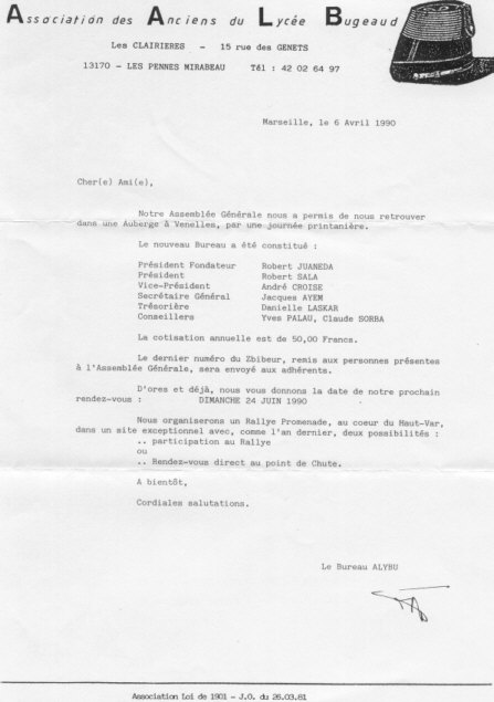 Une des dernières convocations de l'ALYBU : association des Anciens du lycée Bugeaud