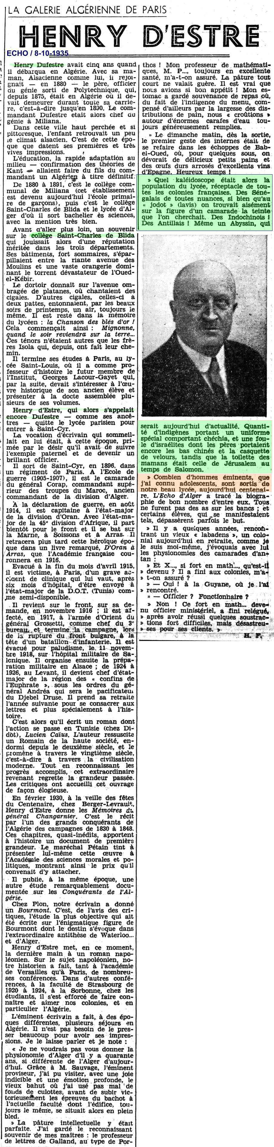 Blida et le lycée d'Alger d'où il sort