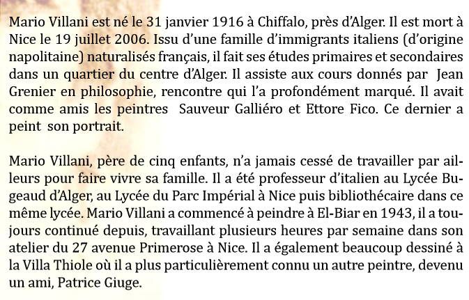 Après l'exode de 1962, Mario Villani enseigna à Nice au