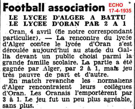 particulier). La rencontre du lycée d'Alger contre le