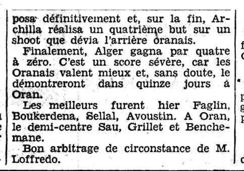 Se signala surtout le joueur oranais Tringniant, qui émergea